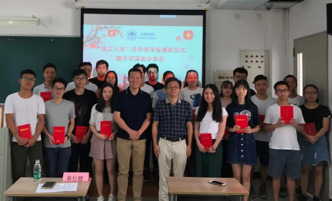 6月28日下午,2017-2018学年度“珠江人寿关爱基金”升学奖学金颁发仪式在广东外语外贸大学金融学院举行,共有31名学生荣获本次升学奖学金。广东外语外贸大学金融学院院长易行健、副院长展凯、党委副书记赵观音出席奖学金颁发仪式。