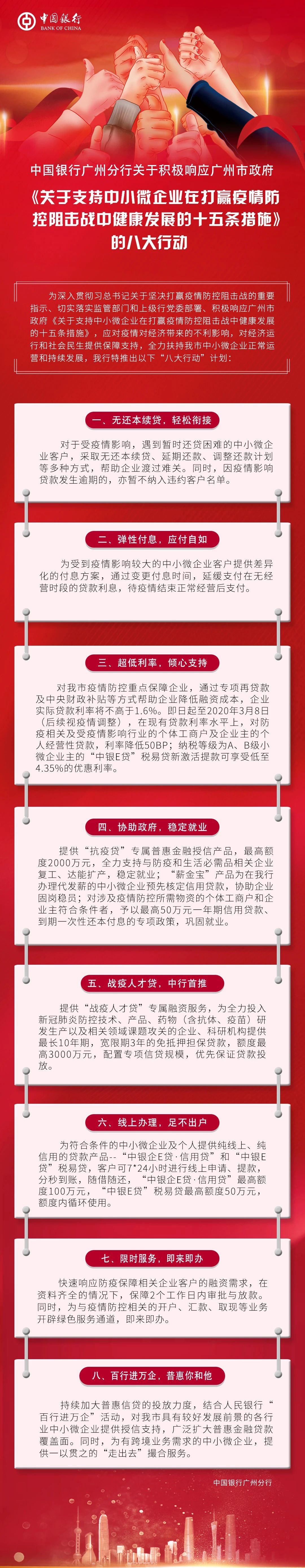 中国银行广州分行积极响应《关于支持中小微企业在打赢疫情防控阻击战中健康发展的十五条措施》的八大行动