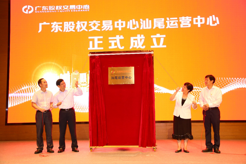 随后,广东省地方金融监督管理局二级巡视员刘凯文、汕尾市人民政府副市长余红、广东股权交易中心总经理王文胜、汕尾市金融工作局副局长刘泽波共同为广东股交汕尾运营中心揭牌。
