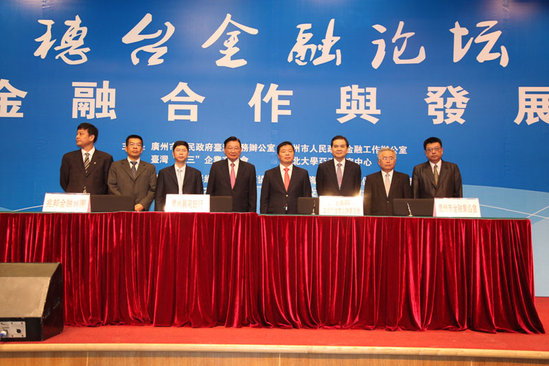 借第二届中国(广州)国际金融交易·博览会举行之机,2013年6月21日上午,穗台金融论坛在广交会展馆B区8号会议室顺利举行。来自穗台两岸金融业界的专家、学者相聚在一起,就两岸金融合作与发展进行相互交流、探讨。本市欧阳卫民副市长、台湾“三三”企业交流会会长江丙坤先生等领导、嘉宾出席本次论坛。