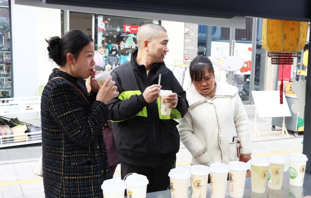 活动中,以罗场镇春茗村茶叶为原料制作的奶茶与茶香酥肉备受青睐。茶香与奶香交融的奶茶口感醇厚,金黄酥脆的酥肉鲜香四溢,引得市民们纷纷驻足品尝、争相购买。市民陈在友赞不绝口:“这奶茶的味道特别好,茶香浓郁,配上我刚买的茶香酥肉,味道巴适得很。这真的是一场舌尖上的盛宴!”