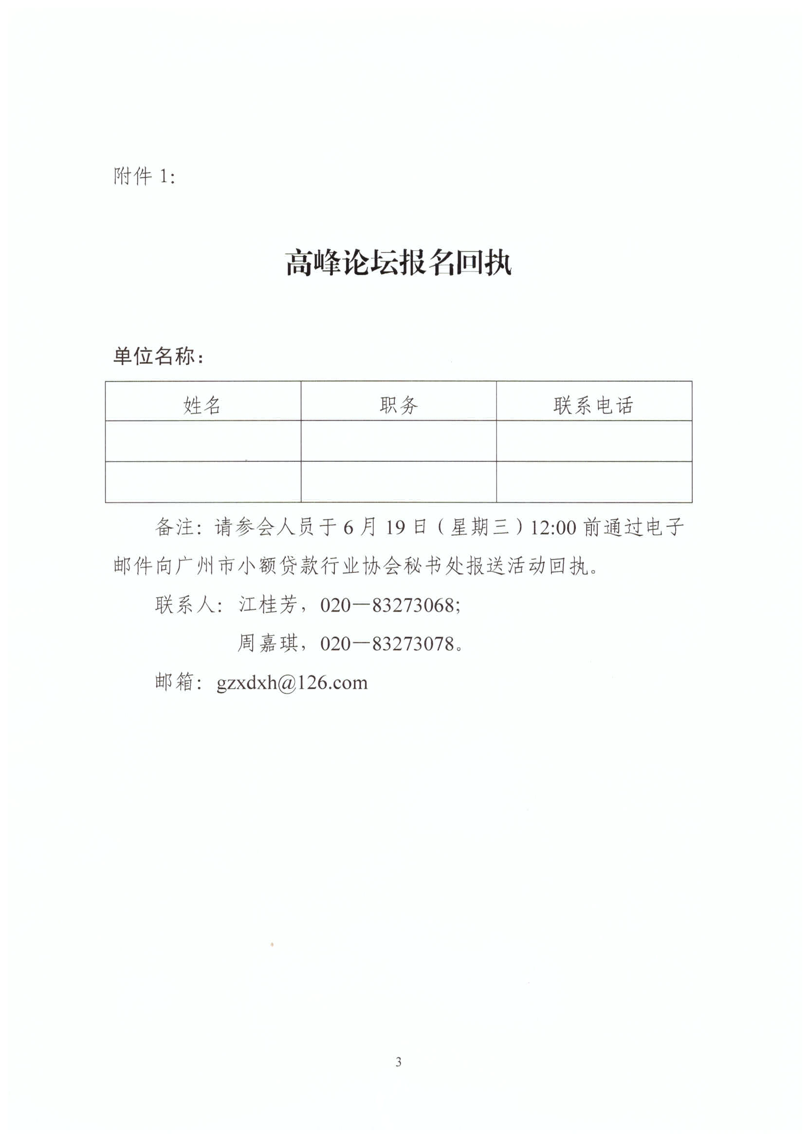高峰论坛报名回执