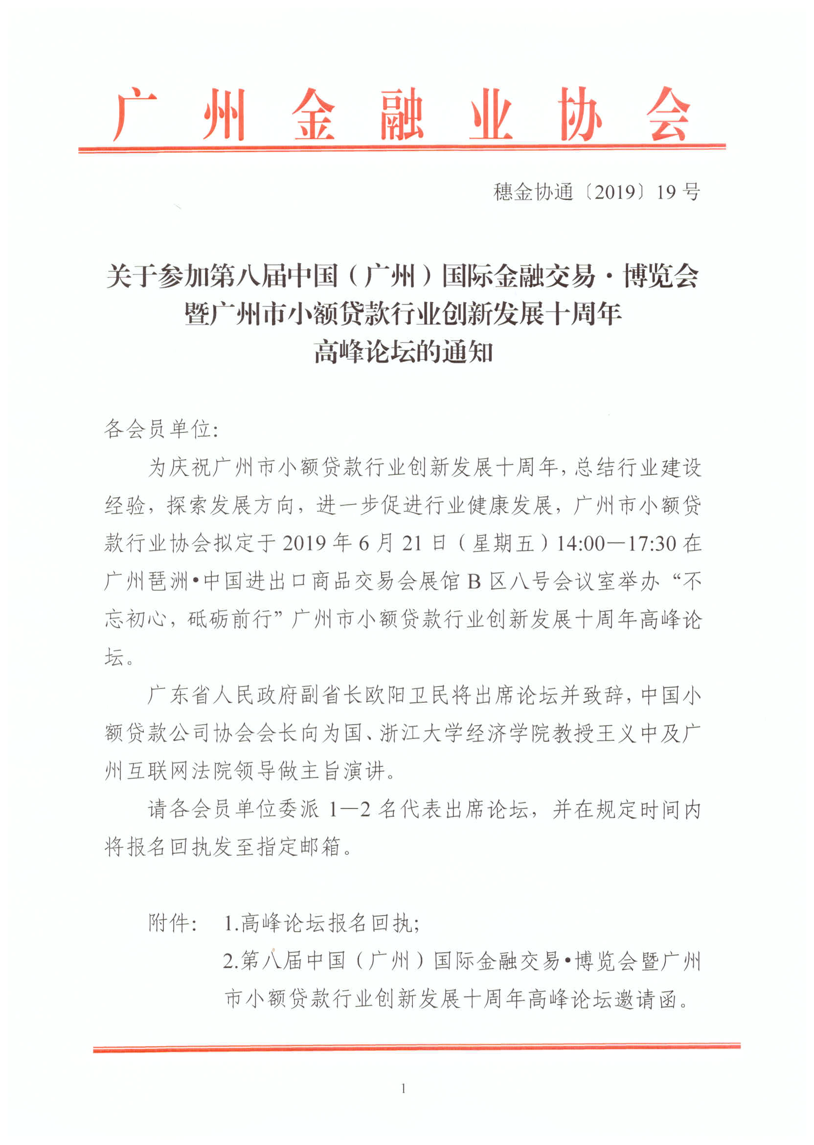 关于参加第八届中国(广州)国际金融交易·博览会暨广州市小额贷款行业创新发展十周年高峰论坛的通知