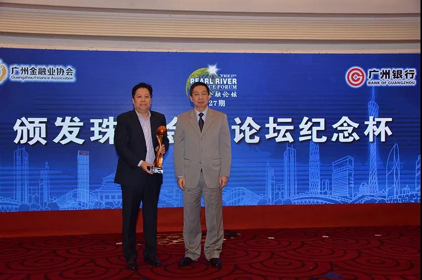 最后,聂林坤副局长向承办方广州银行颁发第27期珠江金融论坛纪念杯,以表彰广州银行对本次论坛的贡献,并对广州银行在普惠金融所做的努力表示肯定。