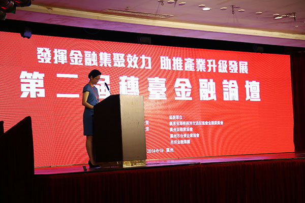 6月19日上午,由市台办、市金融办、台湾三三会、台北大学亚洲研究中心联合主办,省海峡两岸交流促进委员会金融委员会、市台资企业协会、兆邦金融集团、金融业协会协办的第二届穗台金融论坛在中国大酒店丽晶殿举行。本次论坛的主题是“发挥金融集聚效力助推产业升级发展”,省台办陈林佐副主任、市政府刁爱林副秘书长、市台办李小勉主任、市金融办周建军主任、台湾海基会前副董事长高孔廉先生、台湾中研院胡胜正院士、台湾金融研训院许嘉栋董事长、金融业协会许鹏常务副会长、200余家穗台两地金融机构的代表齐聚一堂,探讨穗台金融与产业合作发展前景。