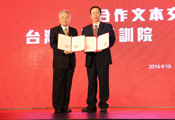 在论坛嘉宾的见证下,论坛举行了台湾金融研训院与广州金融业协会交换合作文本的仪式。